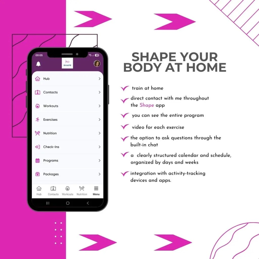 Start your workout and follow the instructions. Each exercise comes with a video demonstration, guidance for proper form, the number of repetitions, and rest time between sets. Integrate your fitness band or smartwatch (if you use one) during the workout for more precise feedback and analysis. Follow the instructions carefully to maintain proper form while performing the exercises. Please review the Disclaimer posted on the website before starting/sent as a file in your Shape at Home Package!
